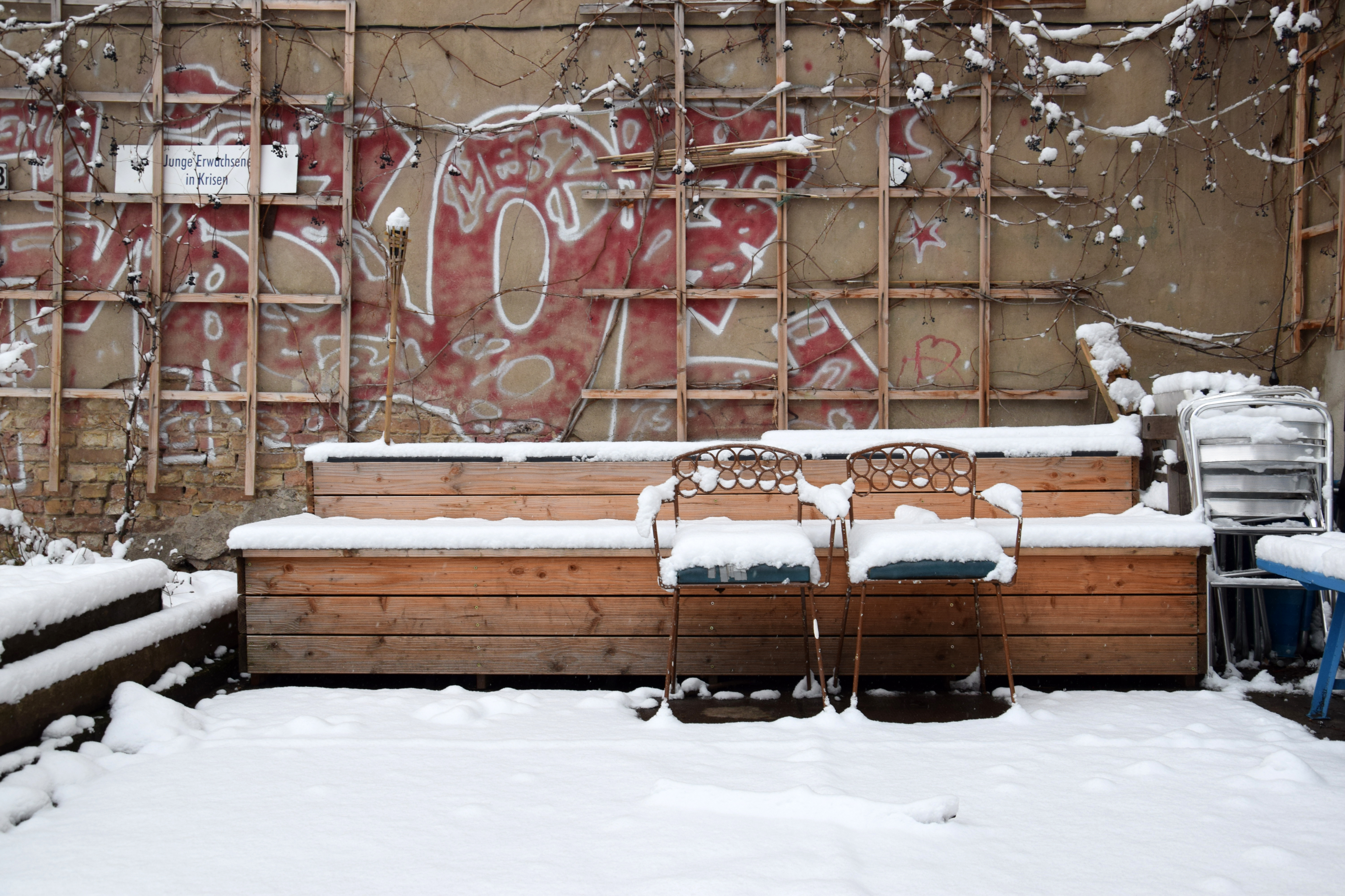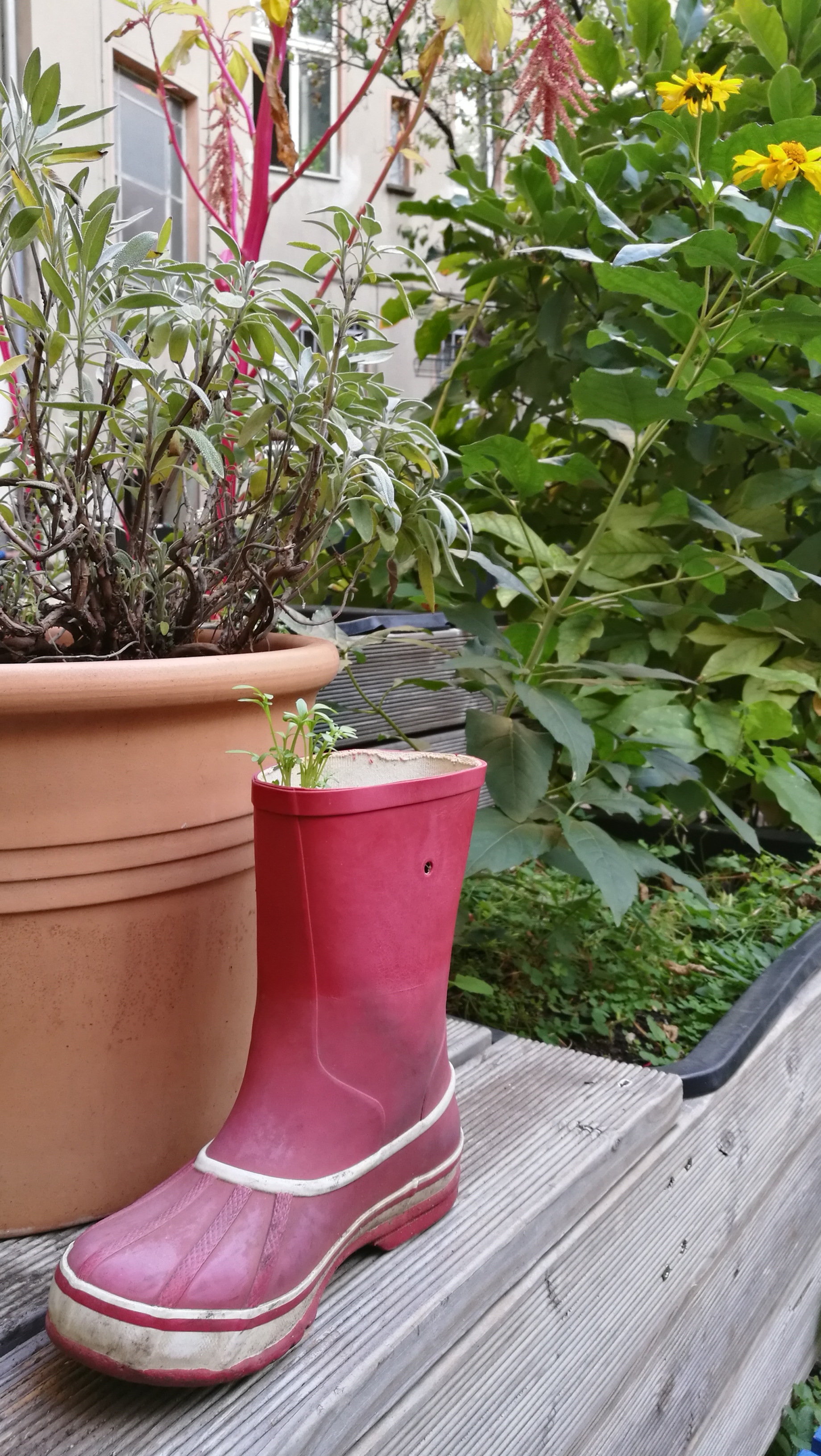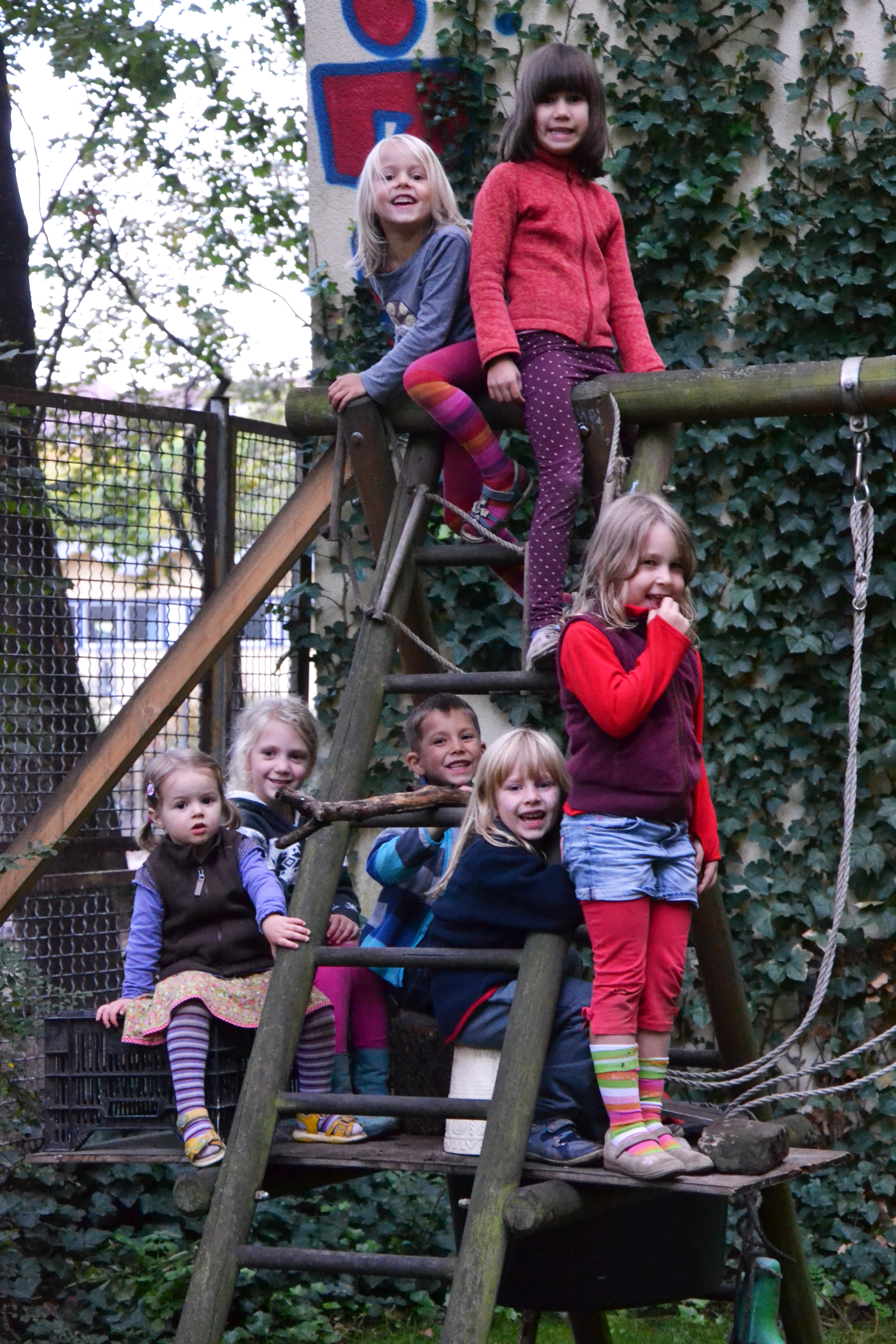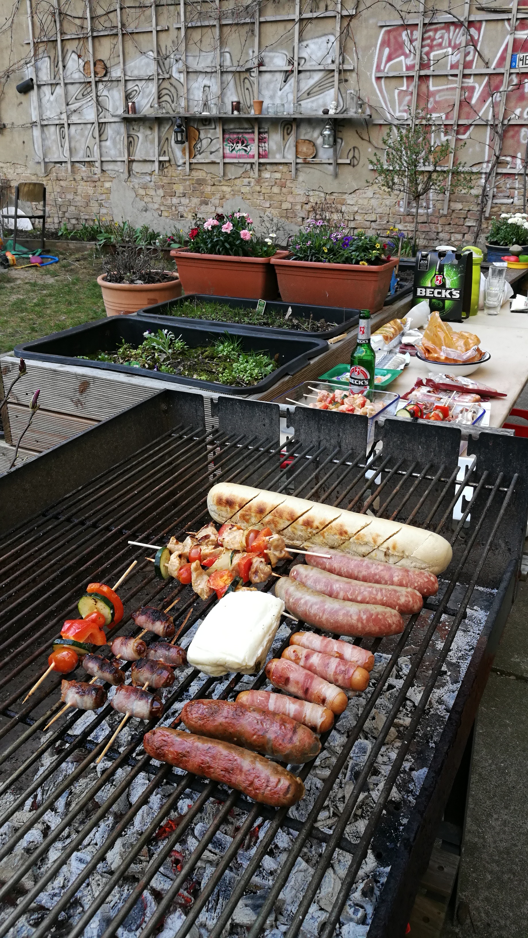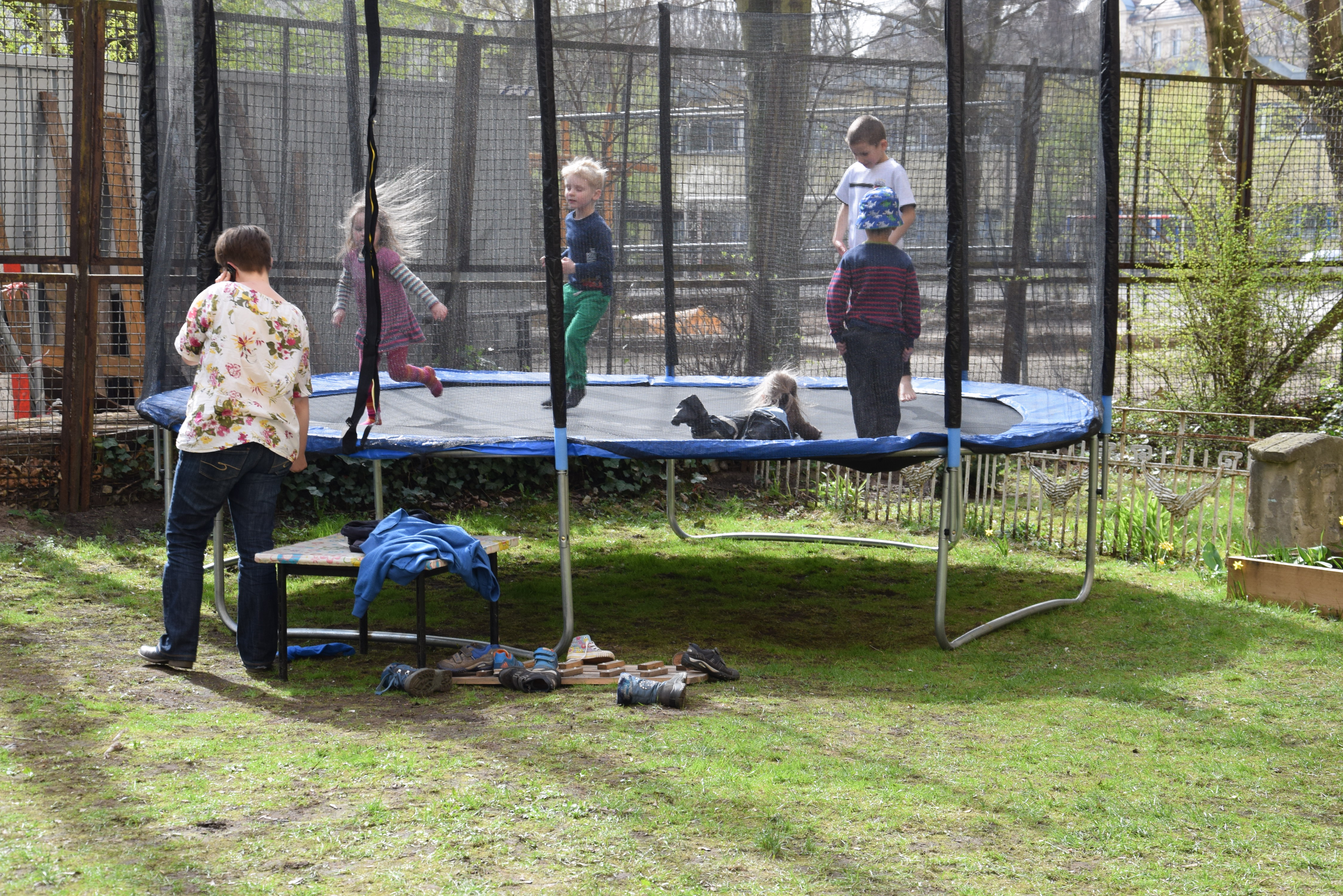 Das absolute Zentrum des Hauses ist der große, grüne Gemeinschaftshof mit seinem alten Aprikosenbaum, dem wildrankenden Wein, dem beeindruckenden Bambus und vielen Blumen- und Gemüsebeeten. Hier wurde in den letzten 10 Jahren durch die Nachbarschaft ein Ort von unschätzbarem Wert geschaffen. Unsere zehn Kinder verbringen ganze Tage auf dem Trampolin und auf den Bäumen, man liest in der Hängematte, trinkt ein Bier mit den Nachbarn, philosophiert bis tief in die Nacht über das Leben oder sieht einfach der Meise beim Nestbau zu.