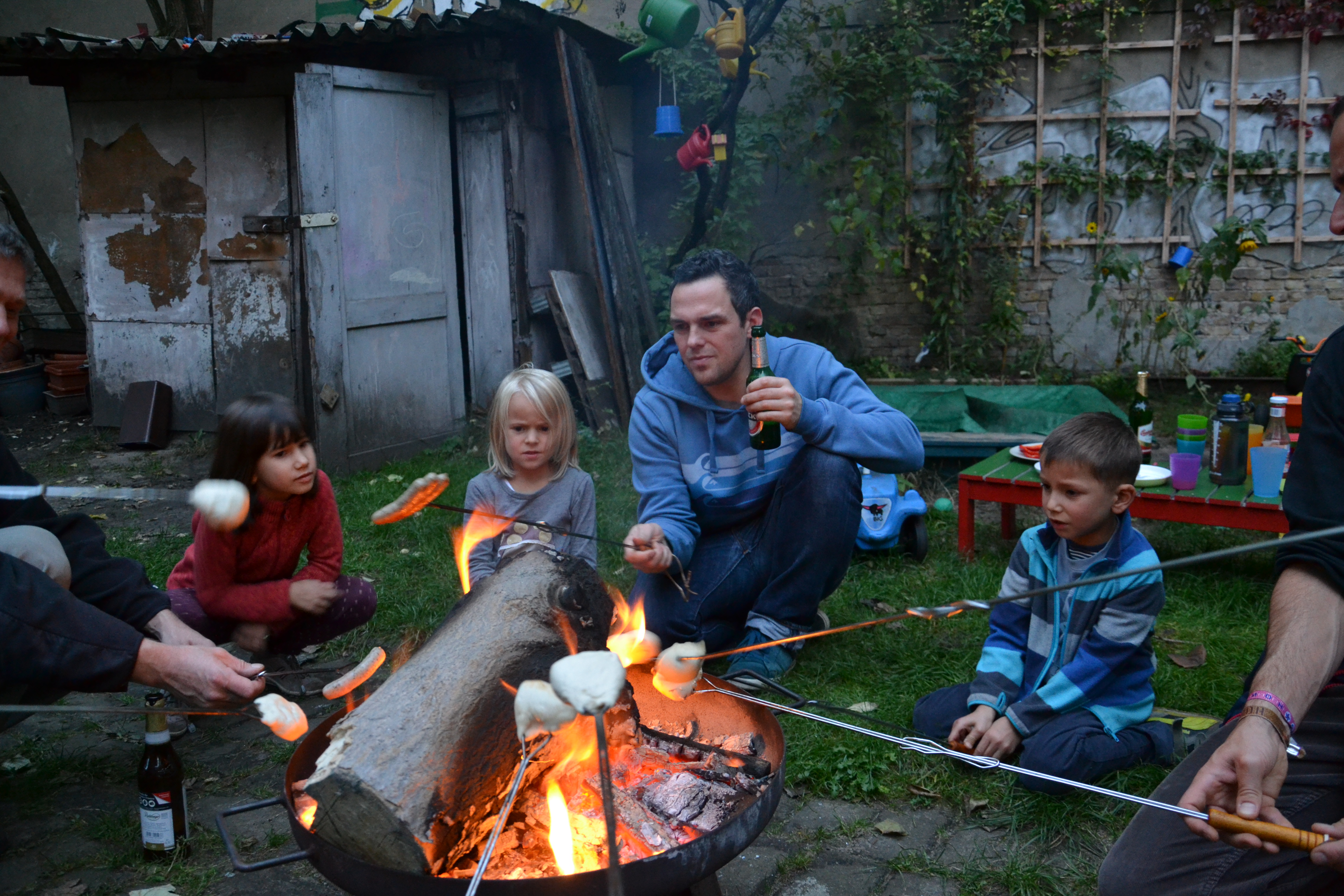 Unsere Kinder sind hier zusammen aufgewachsen. Man fährt gemeinsam in den Urlaub, passt gegenseitig auf die Kinder auf, organisiert im Hofgarten Grillabende oder große Feste für die Nachbarschaft, Freunde und die Familien.