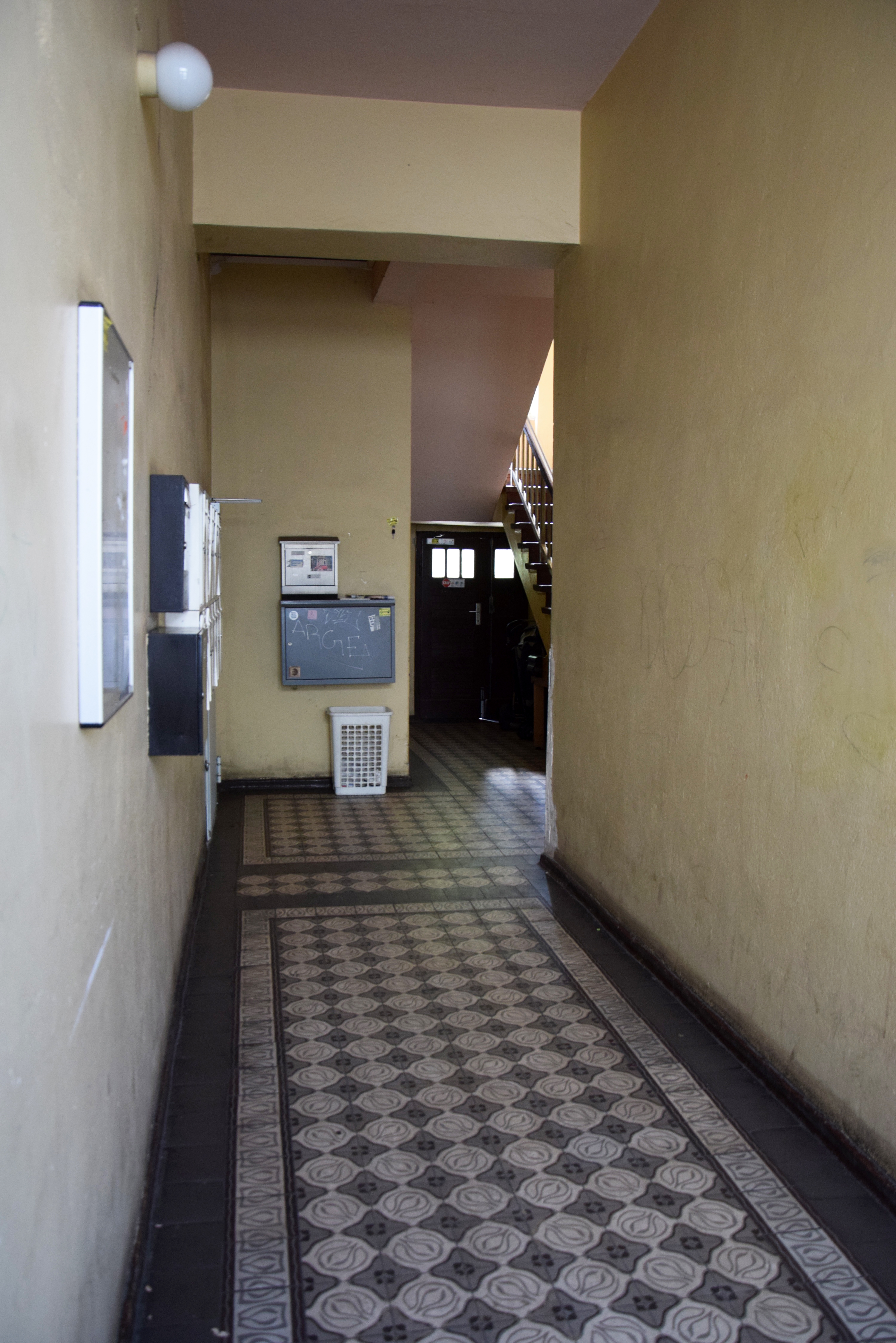 Das Dachgeschoß ist nicht ausgebaut. Es gibt ausschließlich 2- und 3-Zimmerwohnungen, die jeweils einen Balkon haben. Das unsanierte Treppenhaus hätte mal wieder ein bisschen Farbe nötig. Den Charme, den auch die lange nicht mehr sanierte Fassade hat, würde es dann aber verlieren.